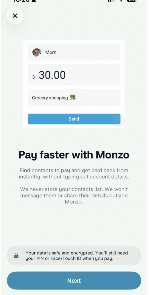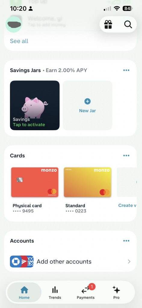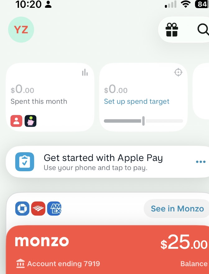 monzo app 上显示的页面是这样的