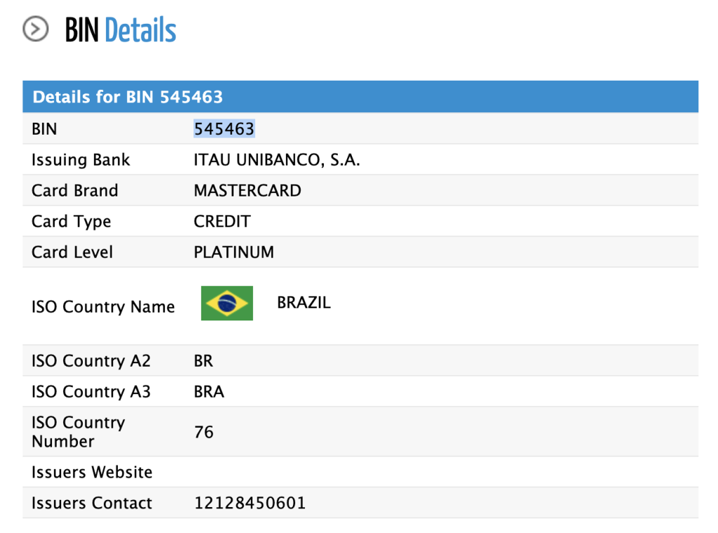 通过card bin 查询到的记录